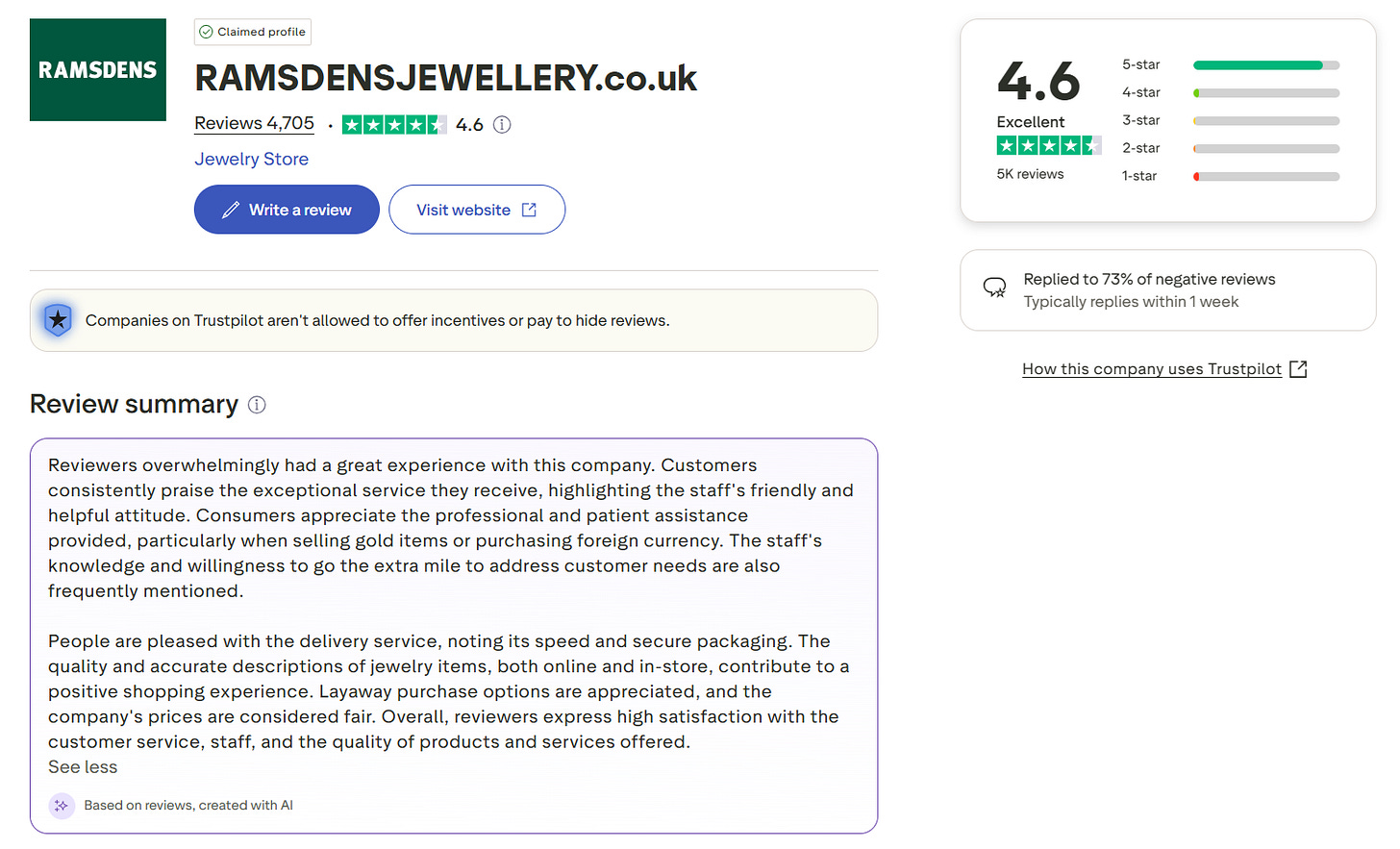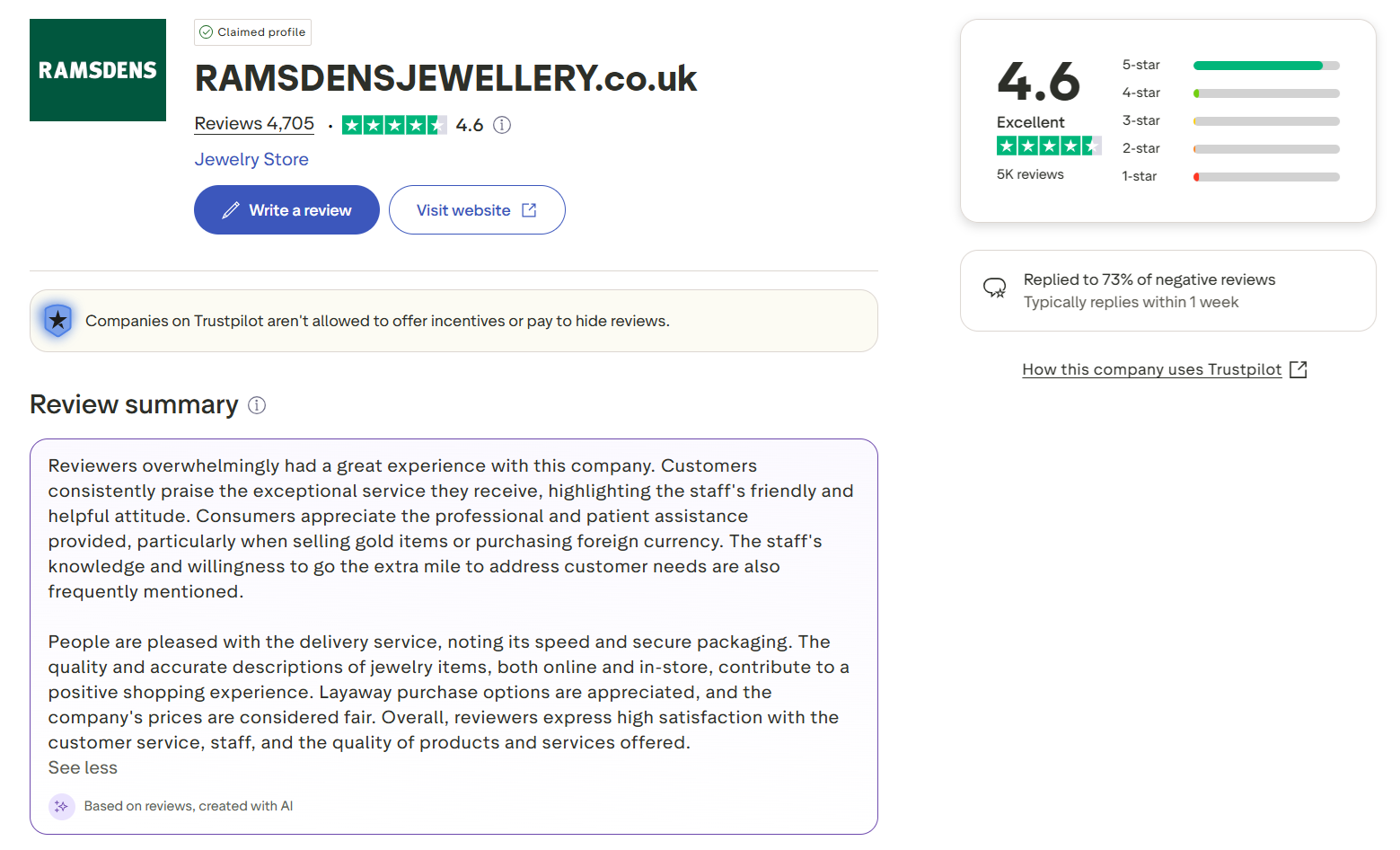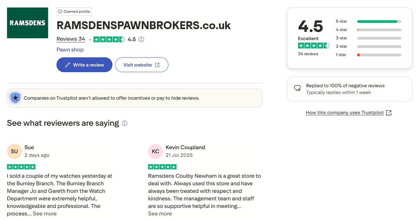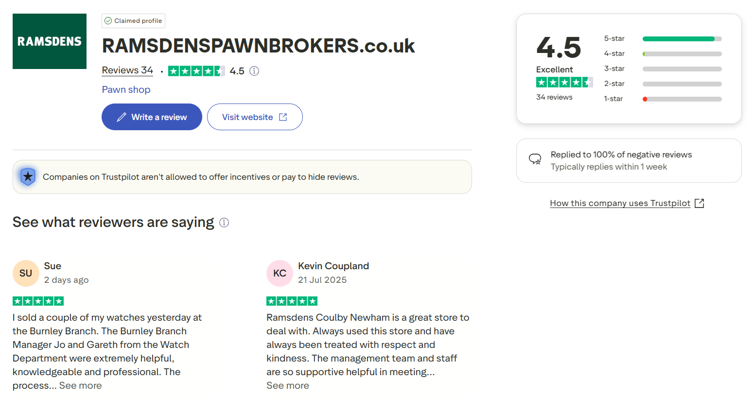 Being recognised and trusted is crucial in a market where trust is critical. Ramsdens gets this spot on - just look at their review stats below -